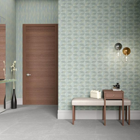Основой коллекции является геометрия в любом ее проявлении. Серия «Коллаж» с геометрическим рисунком и легким намеком на эстетику лофта, имеющий деликатный металлический отблеск, отлично дополнит любой индустриальный интерьер, великолепно сочетаясь с другими природными текстурами. А глубокое тиснение и видимая структура рисунка добавляет ему объем и глубину.